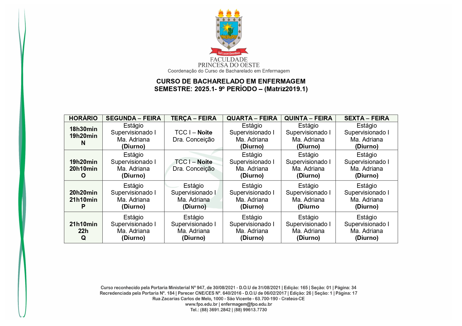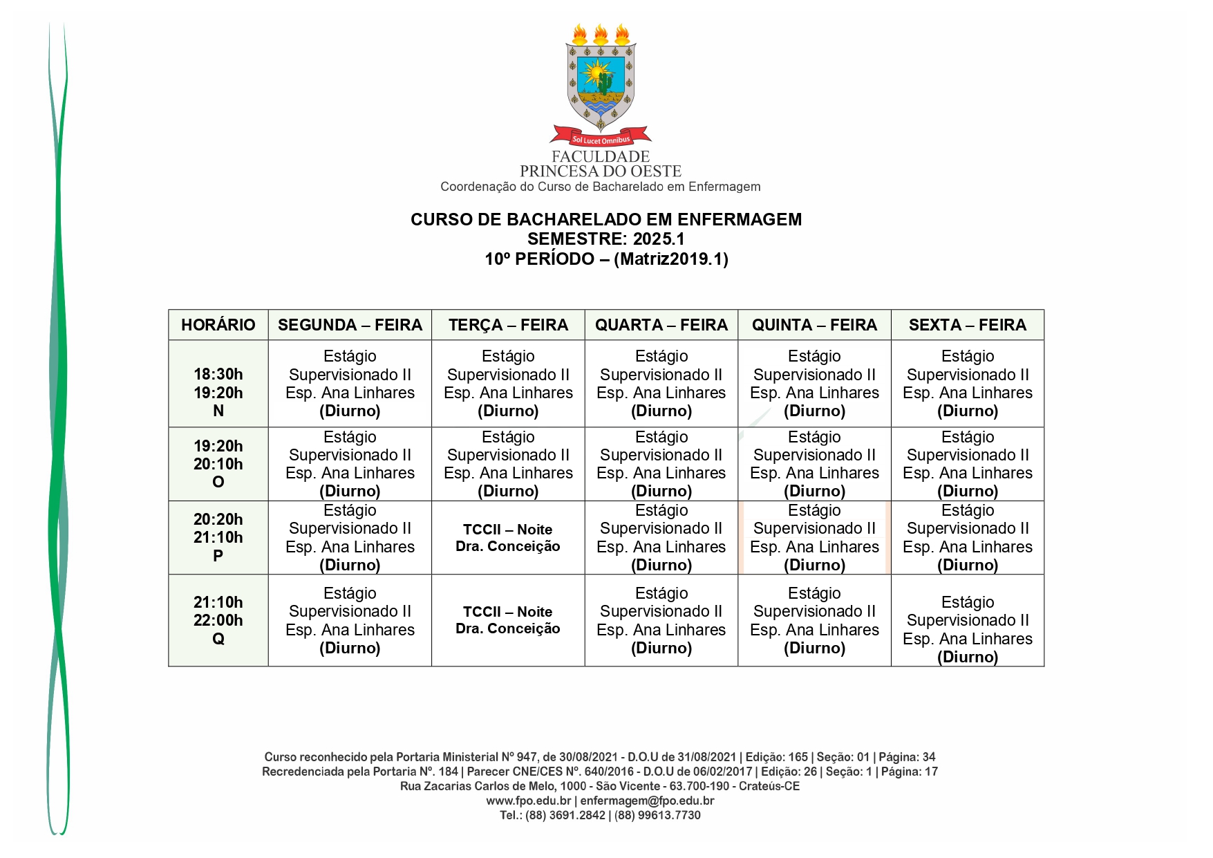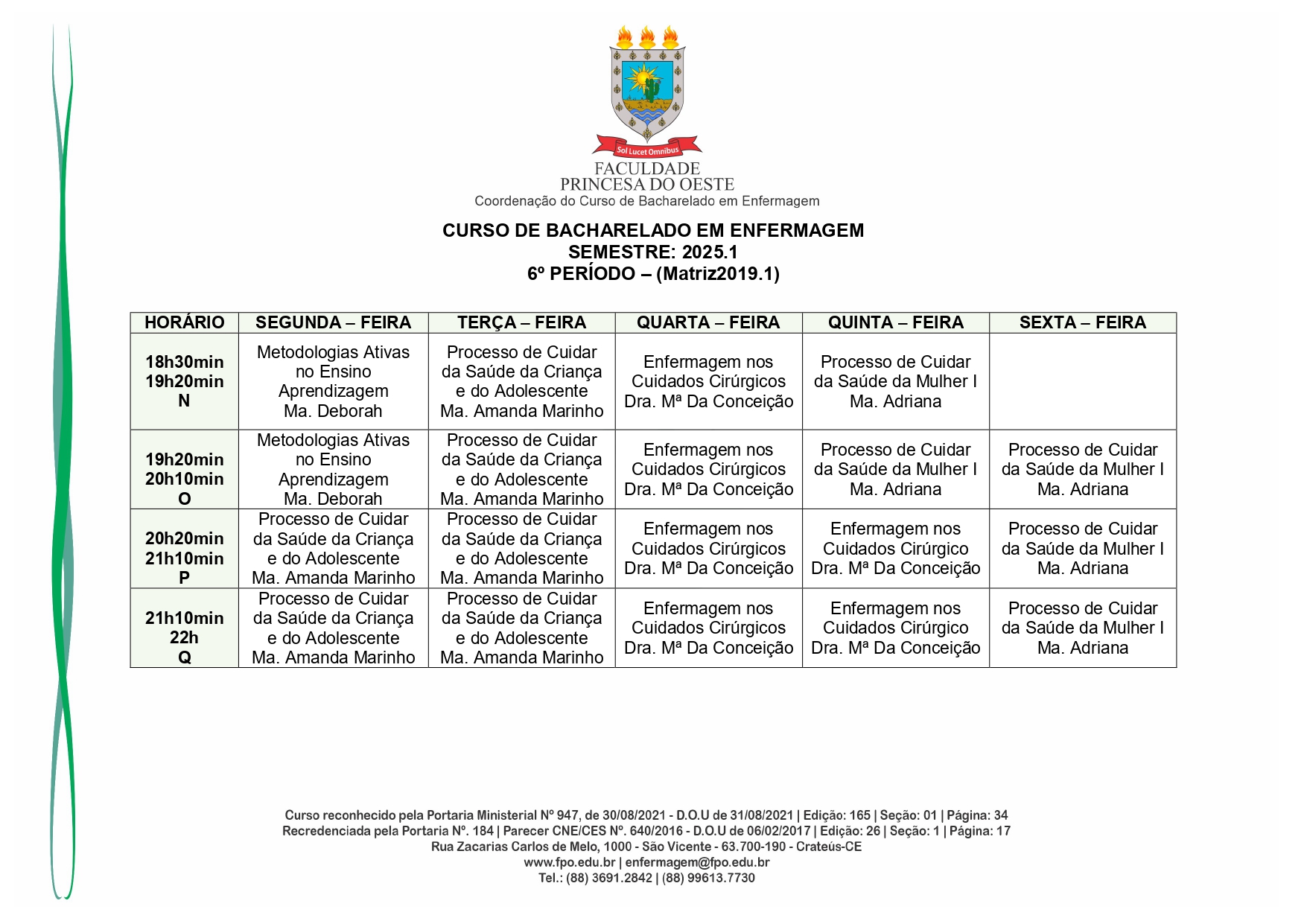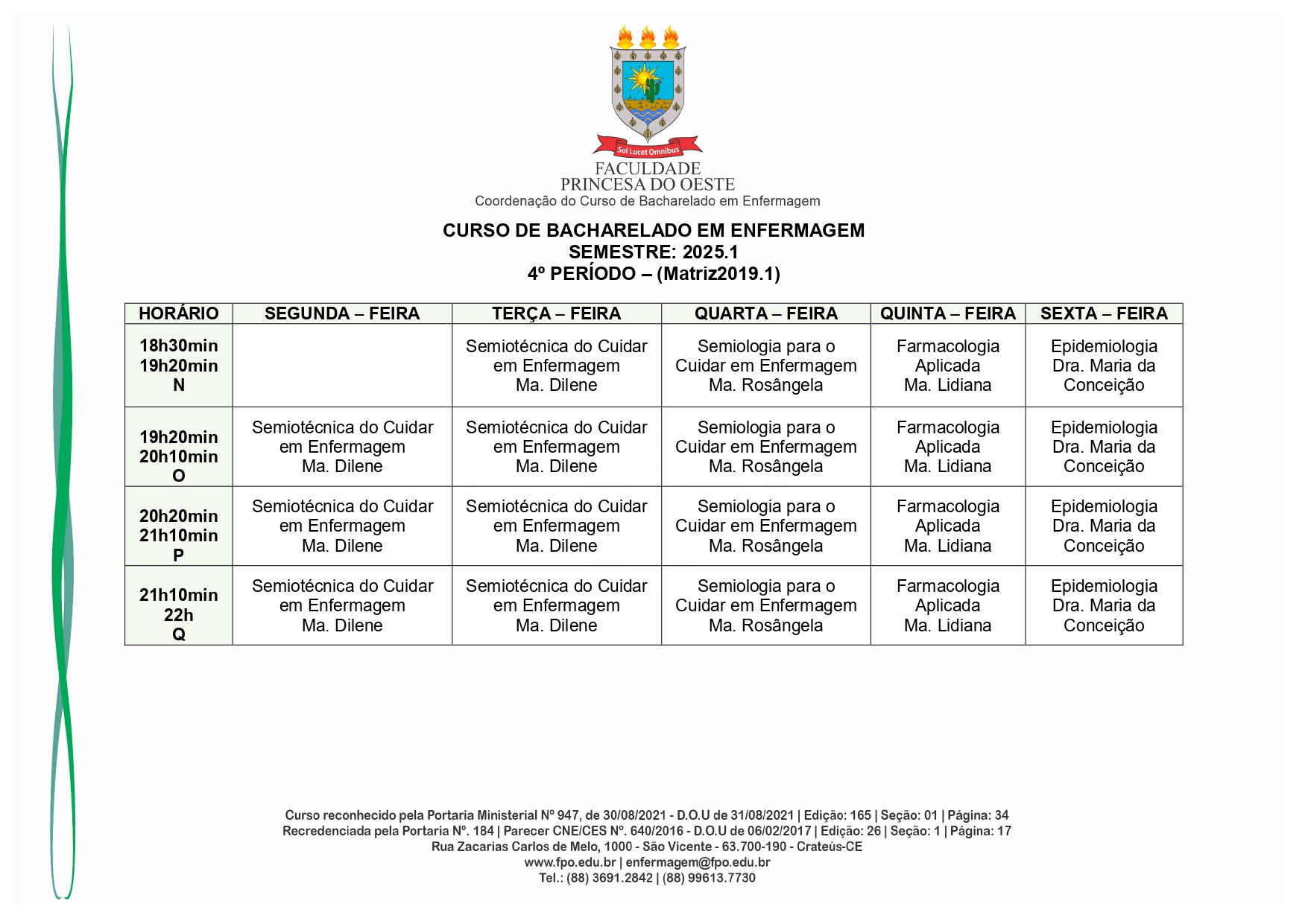 Reconhecido pelo MEC por meio da Portaria Nº 947, de 30 de agosto de 2021, o Curso de Bacharelado em Enfermagem é presencial, com 05 anos de formação, é voltado para a formação de profissionais na área da saúde, sendo qualificado o egresso em prestar toda assistência ao enfermo.